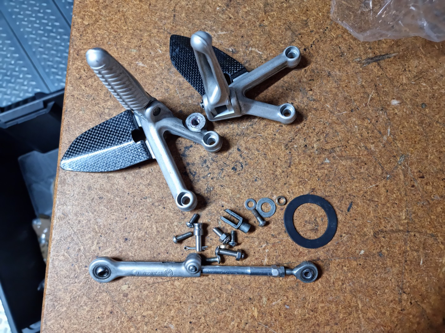 Ducati 999s footpeg assy with carbon heel guards. 82410841a, 82410831a as per pics & some misc parts